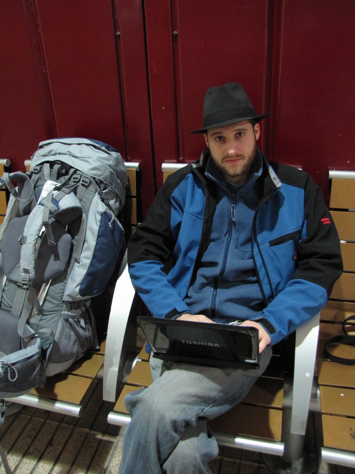 Tim waiting for the train at Casablanca airport- enjoying the station’s free (!) internet